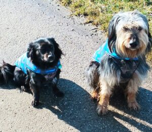 ‚Und jetzt die süße Suzy.‘ Das ließ sich die Hündin nicht zweimal sagen. In null Komma nichts war sie an Iris‘ Seite. Mit wenigen Handgriffen saß auch ihr Mäntelchen perfekt.